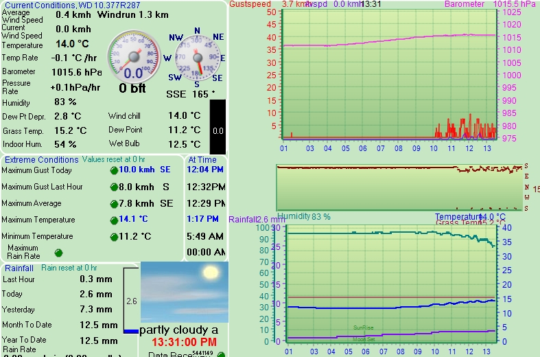 The data is logged at two minute intervals, but there is data recorded every minute. Use the RELOAD facility on your browser to retrieve the latest data. Disclaimer: Some information on this site is provided by my personal weather station and is not an officially recognized weather station for weather reporting. Never base important decisions on this or any weather information obtained from the Internet. |