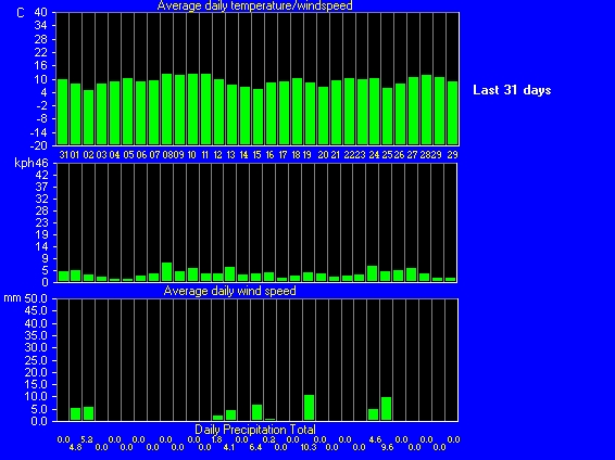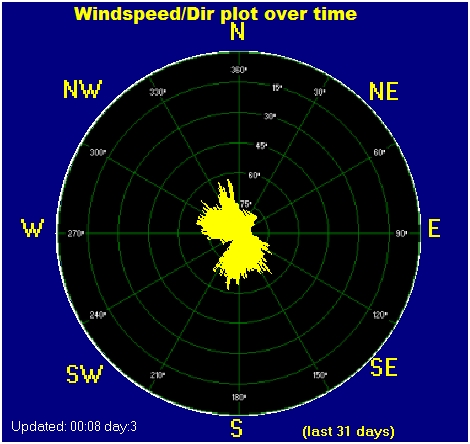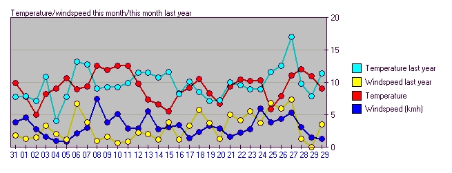 Maximum windspeed 24.1 kmh from 338° on day 29 at time 06:04
