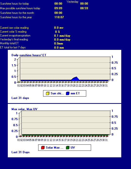 Sunshine hours , ET, Max solar for each day