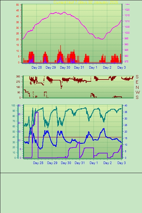 Maximum windspeed 40.7 kmh from 315° on day 03 at time 11:44